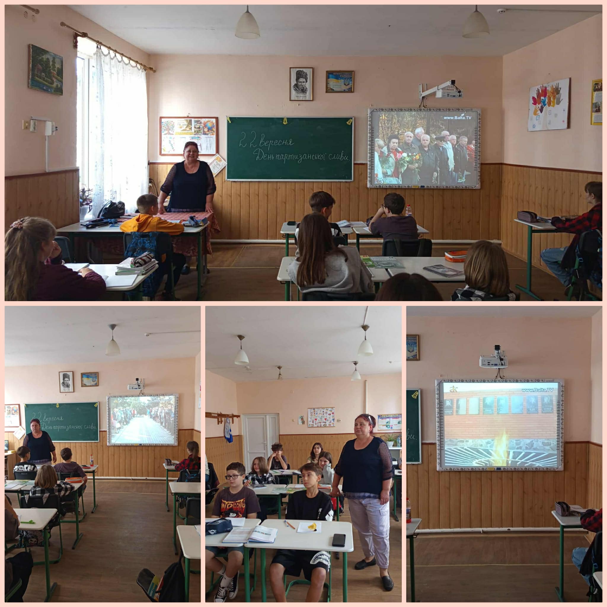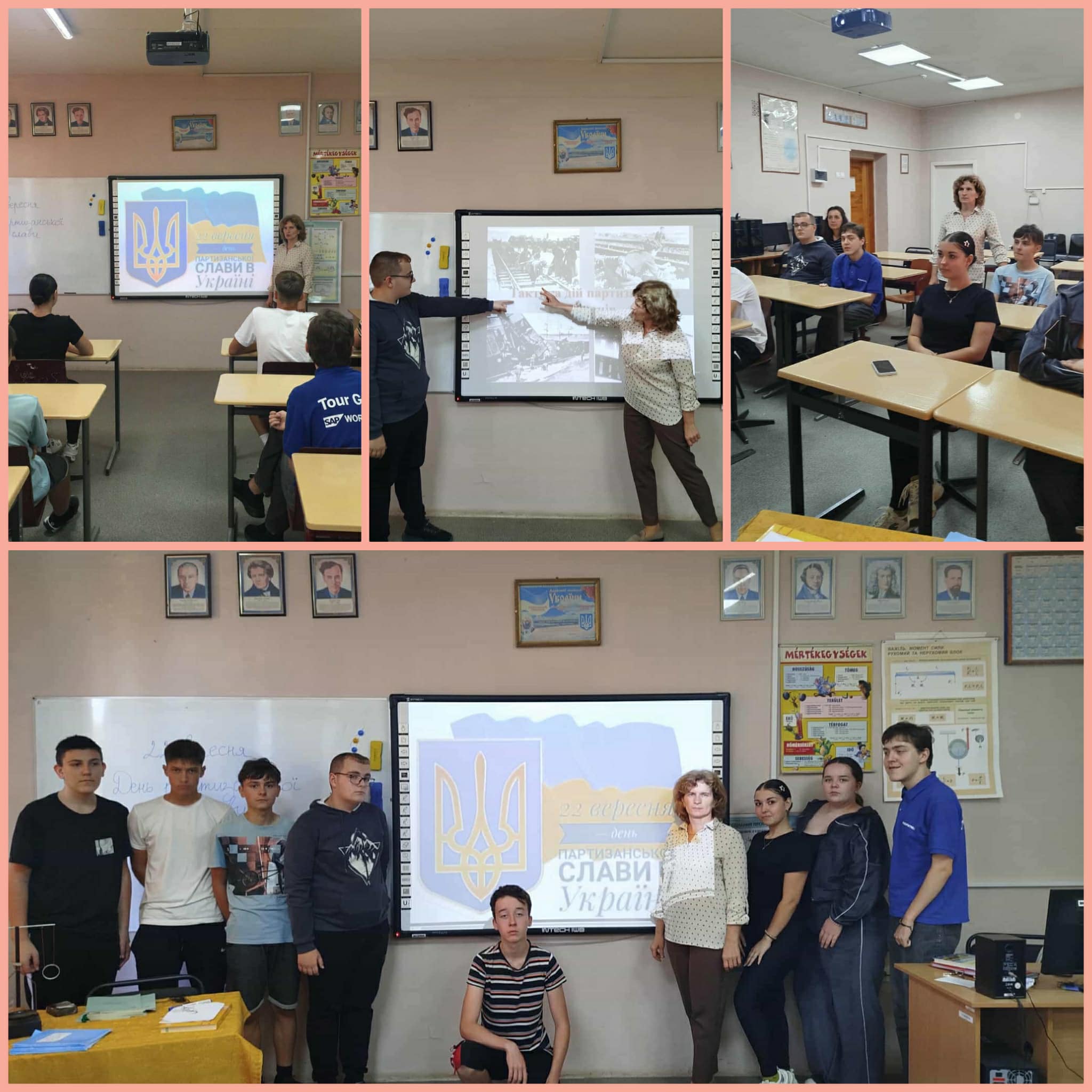 У нашій школі також пройшли заходи, присвячені цій події. Учні 7 та 10-их класів переглядали документальне відео про партизанський рух в Україні. Фільм розповідав про складні умови, в яких діяли партизани, їхню мужність і самопожертву. Після перегляду школярі поділилися своїми враженнями та думками.