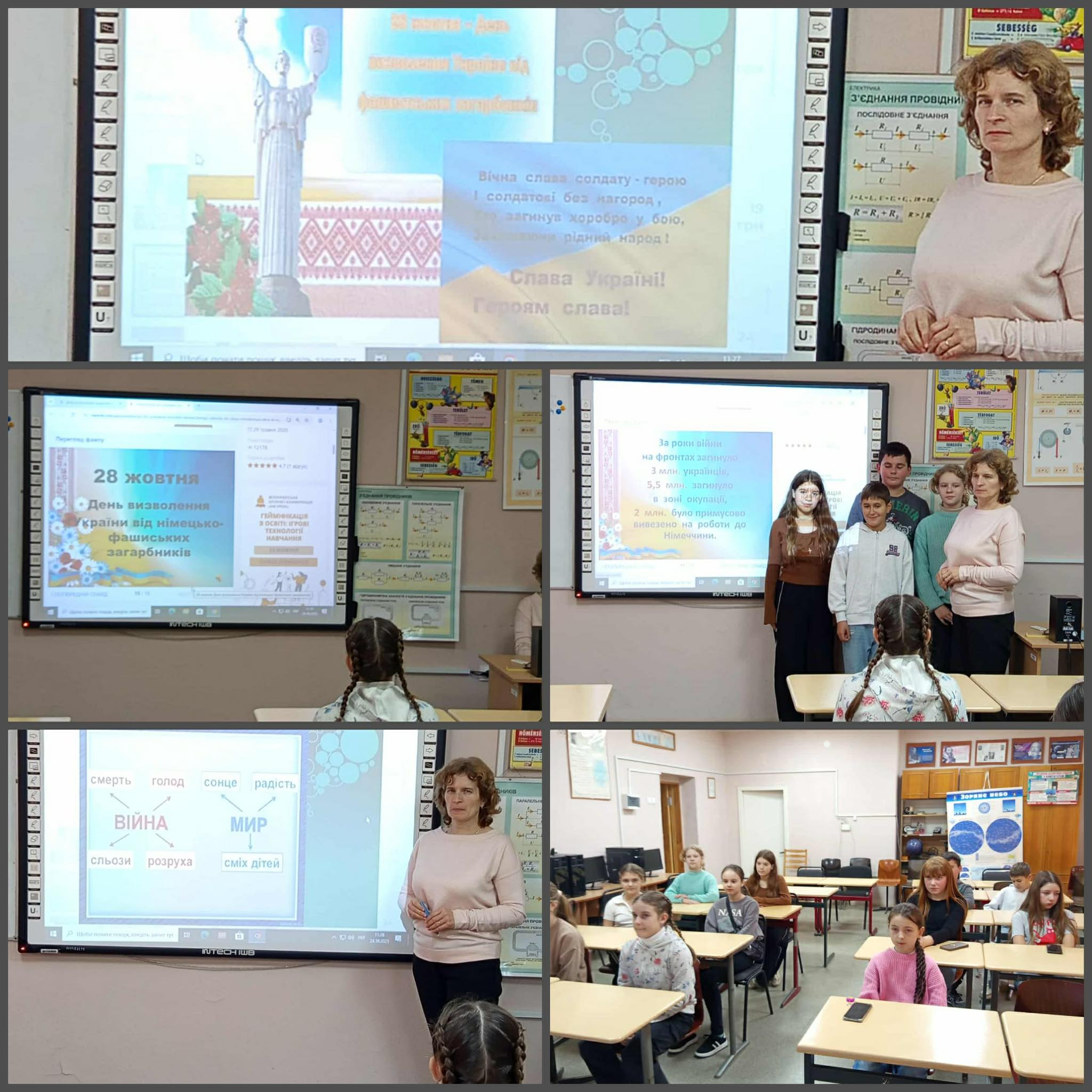 Педагоги-організатори підготували цікаву презентацію з фотографіями та архівними матеріалами. Вчителі історії наголосили на важливості памʼятати про тих, хто віддав життя за Батьківщину.