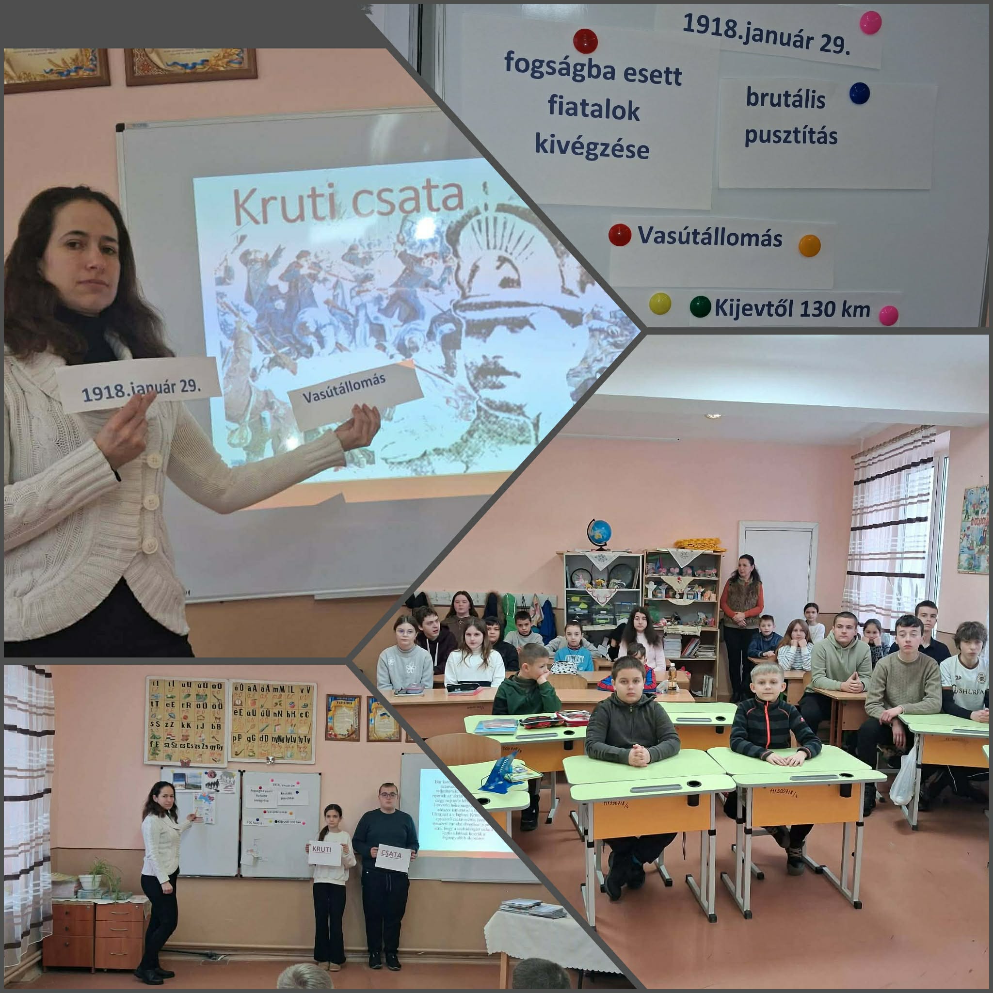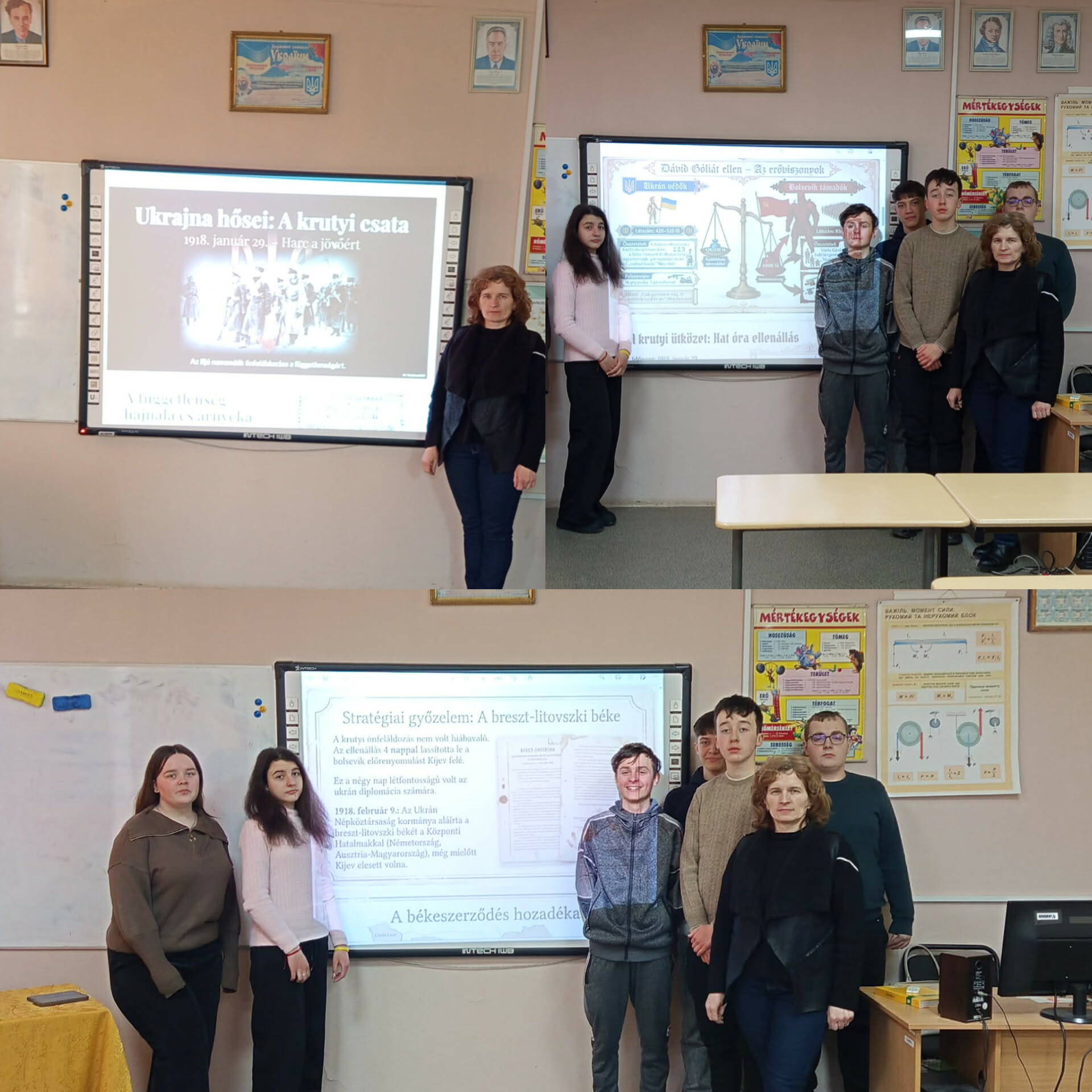 Класні керівники 7–8 класів Пелешко А. А. та Митро-Балаж Я. Є. детально розповіли учням про основні події січня 1918 року, наголосивши на мужності, патріотизмі та самопожертві юних героїв.