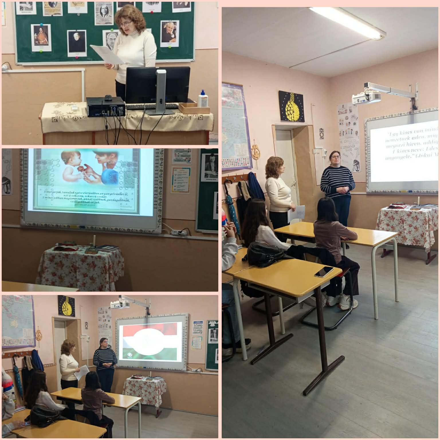 Учні старших класів активно долучилися до підготовки свята: вони створили змістовну стіннівку та яскраві малюнки, присвячені красі й багатству української та угорської мов. Творчі роботи прикрасили фойє ліцею та стали окрасою тематичної виставки. Під час заходу звучали вислови відомих діячів про мову як духовний скарб нації. Особливий інтерес викликала вікторина «Від Бога наша пісня, наша мова», у якій учні продемонстрували глибокі знання, кмітливість і любов до рідного слова.