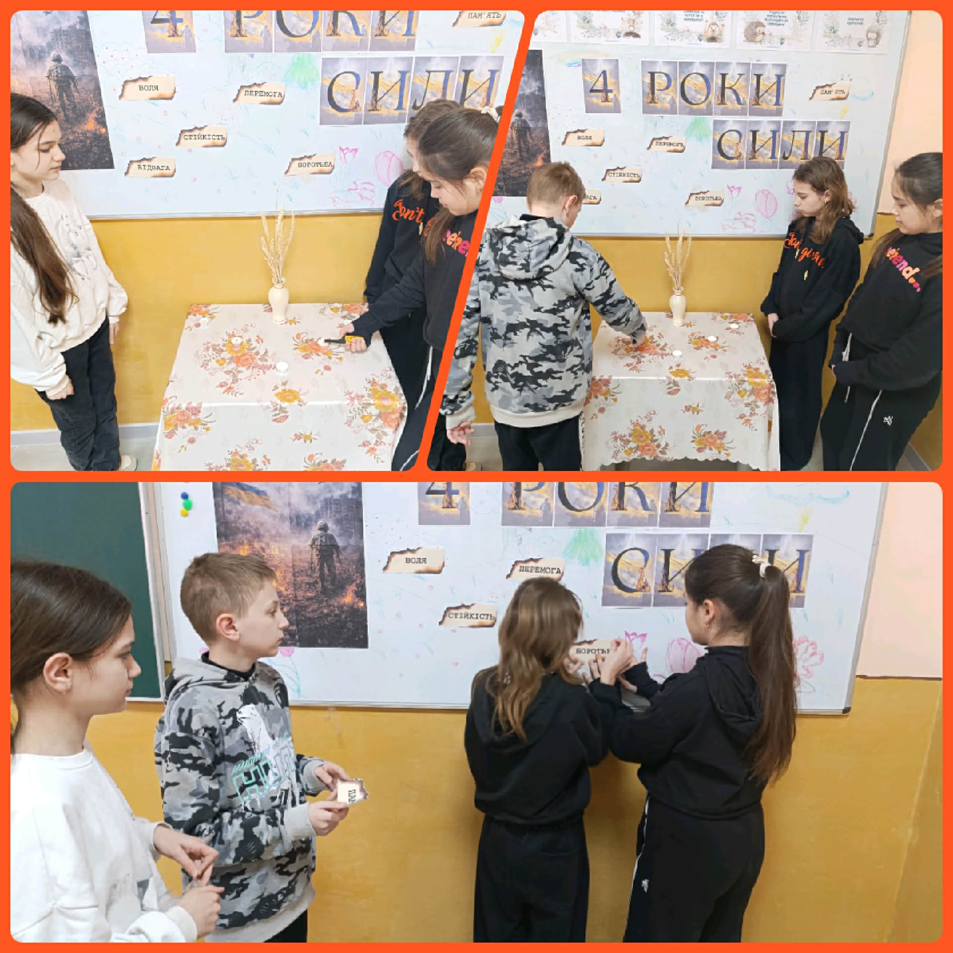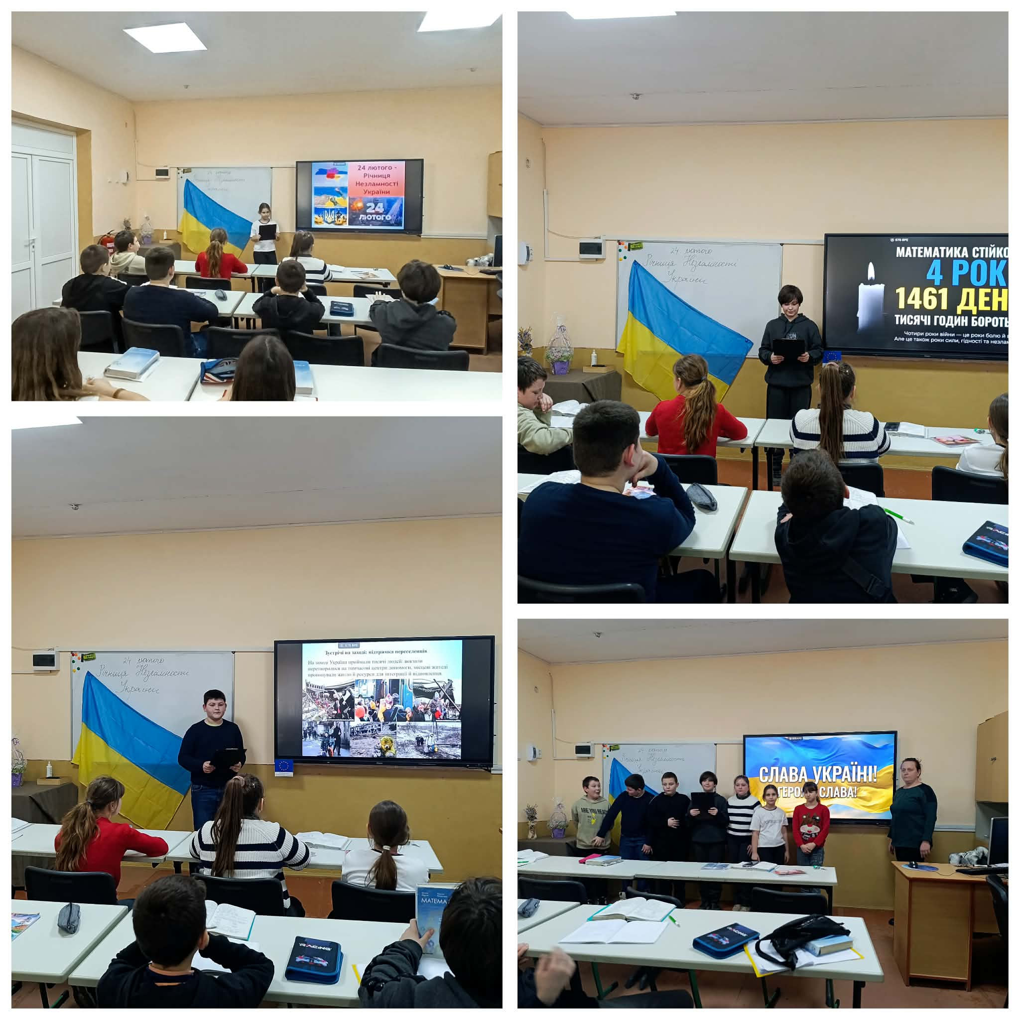 24 лютого — це день пам’яті за всіма, хто загинув через війну. Ми згадуємо воїнів, які стали на захист нашої держави, мирних жителів, чиї життя обірвалися, дітей, які мали б зростати в мирі. Світла пам’ять про них — у наших серцях. Водночас цей день є нагадуванням про Незламність українського народу. Попри біль і втрати, ми вистояли. Українці об’єдналися, підтримуючи одне одного, допомагаючи армії, зберігаючи віру в перемогу. Діти та молодь щодня доводять, що навіть у складні часи можна залишатися людяними, сильними та небайдужими.