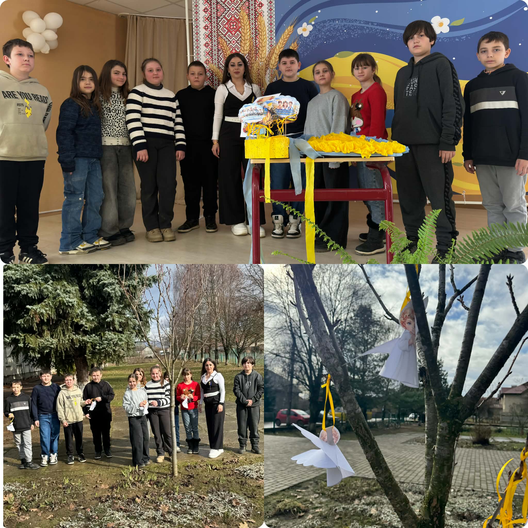 Учні разом із педагогом долучилися до створення символічних виробів ,карток та паперових янголів. Учні виготовили паперових янголів пам’яті та розмістили їх на гілках дерев на території закладу. Ці символічні фігурки стали знаком вшанування пам’яті всіх, хто загинув унаслідок війни , та вірою і тихим символом пам’яті та молитви за мир в Україні.