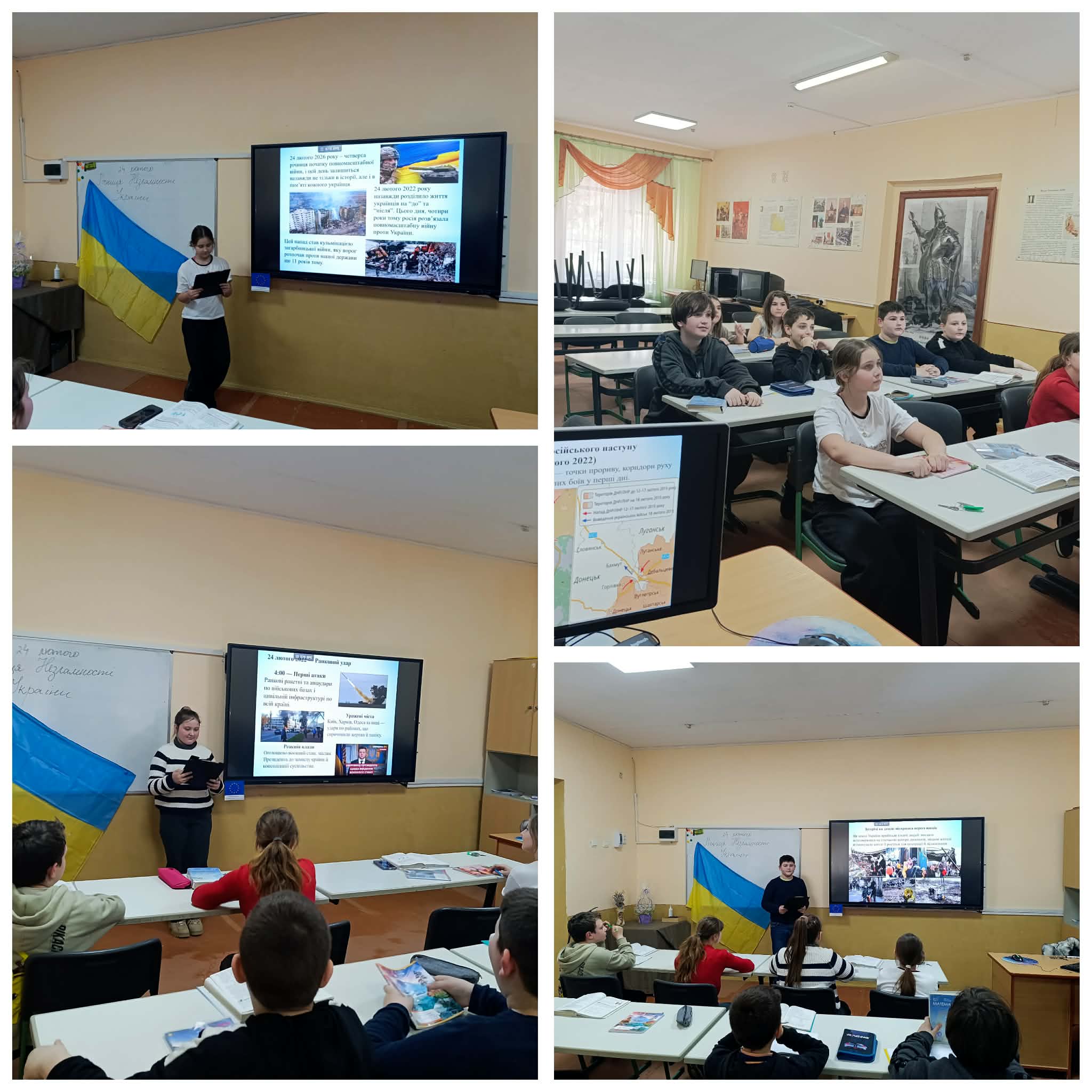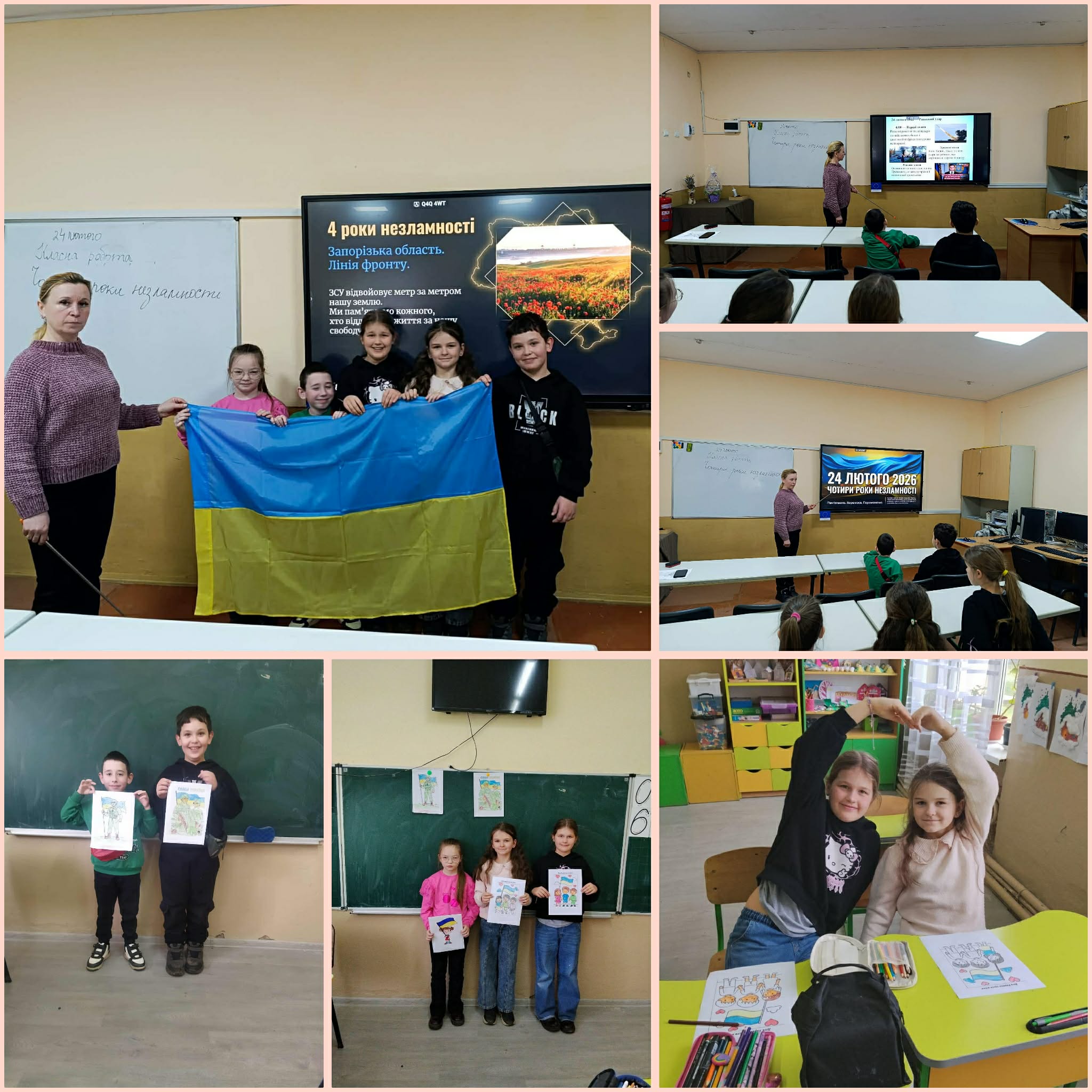 24 лютого — це дата, що назавжди закарбувалася в історії нашої держави та в серці кожного українця. Саме цього дня розпочалася повномасштабна війна проти України — трагедія, яка змінила життя мільйонів людей. Того ранку багато родин прокинулися від звуків вибухів і сирен. Для дітей війна увійшла в життя раптово — разом зі страхом, вимушеними переїздами, розлукою з рідними, навчанням в укриттях і тривогами за близьких. Школа перестала бути лише місцем навчання — вона стала простором підтримки, єдності та віри в майбутнє.