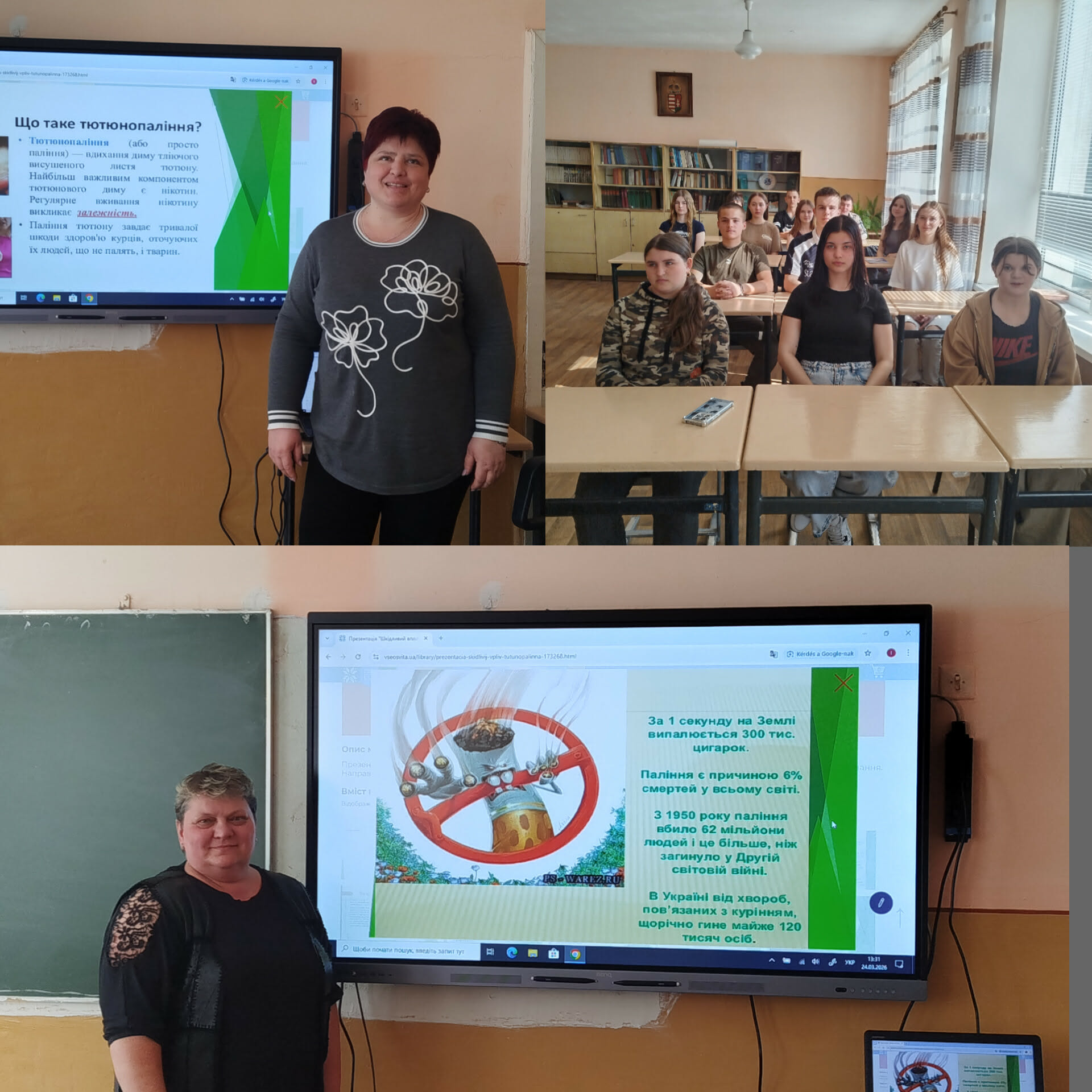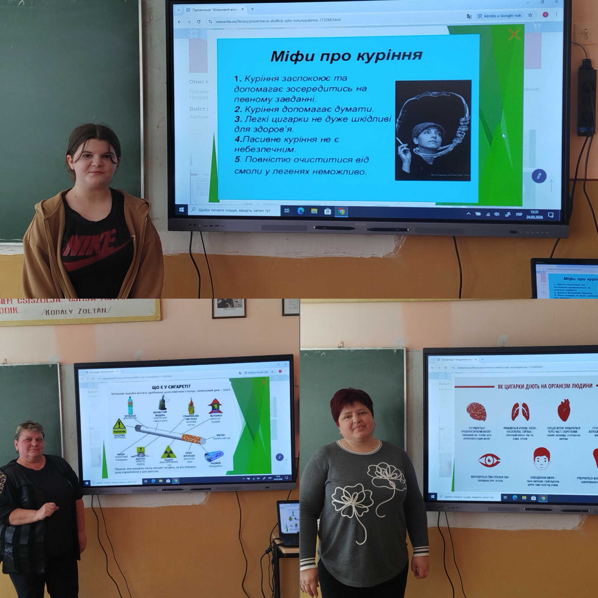 У рамках проведених заходів педагоги- організатори, вчитель основи здоров’я Пелешко К.О провели тематичні бесіди, тренінги та інформаційні години. Учні мали змогу дізнатися про негативний вплив шкідливих звичок на організм людини, їхні соціальні та психологічні наслідки, а також про важливість ведення здорового способу життя.
