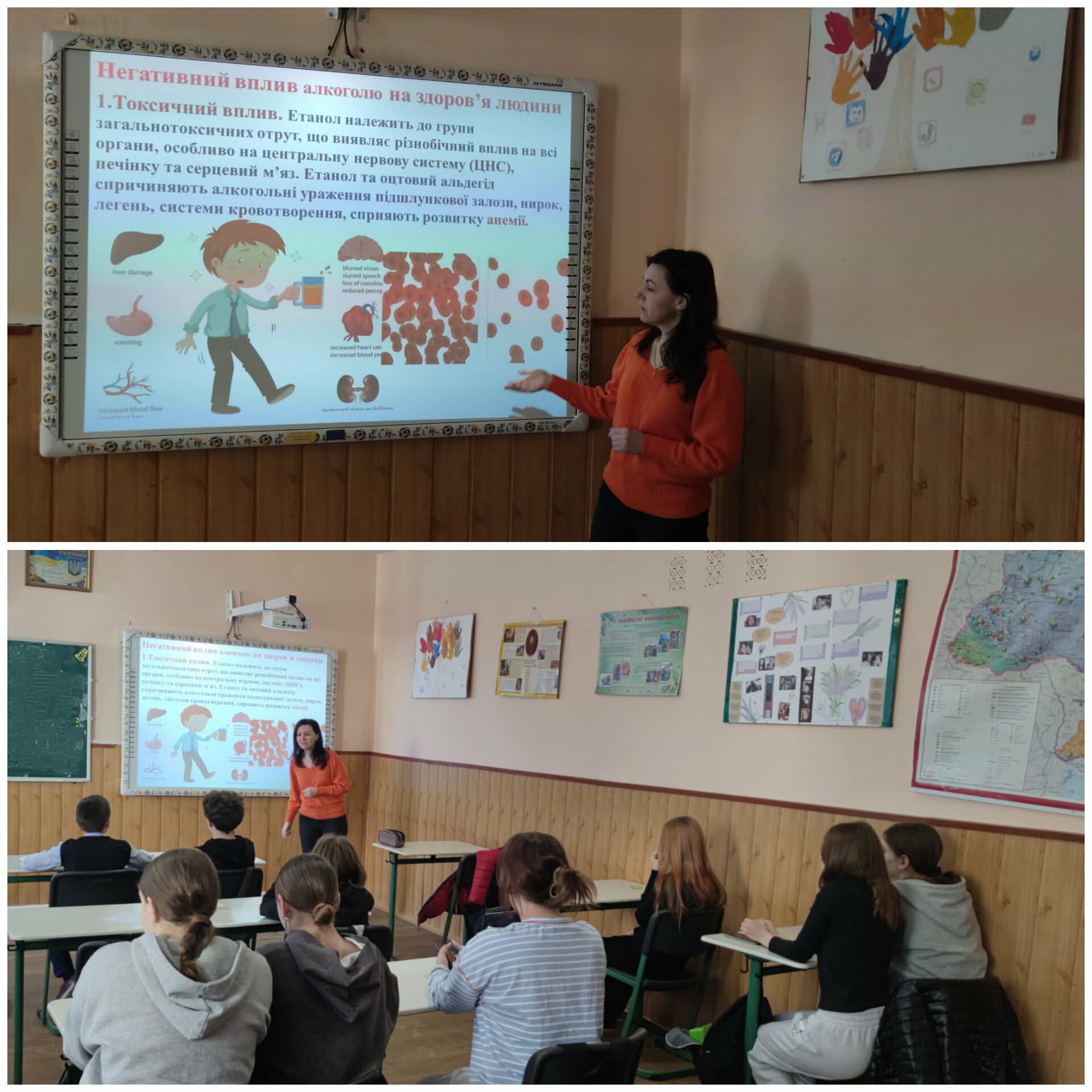 Для учнів старших класів були проведені окремі заняття, під час яких обговорювалися питання правової відповідальності за вживання та розповсюдження заборонених речовин, а також шляхи протидії негативному впливу однолітків.